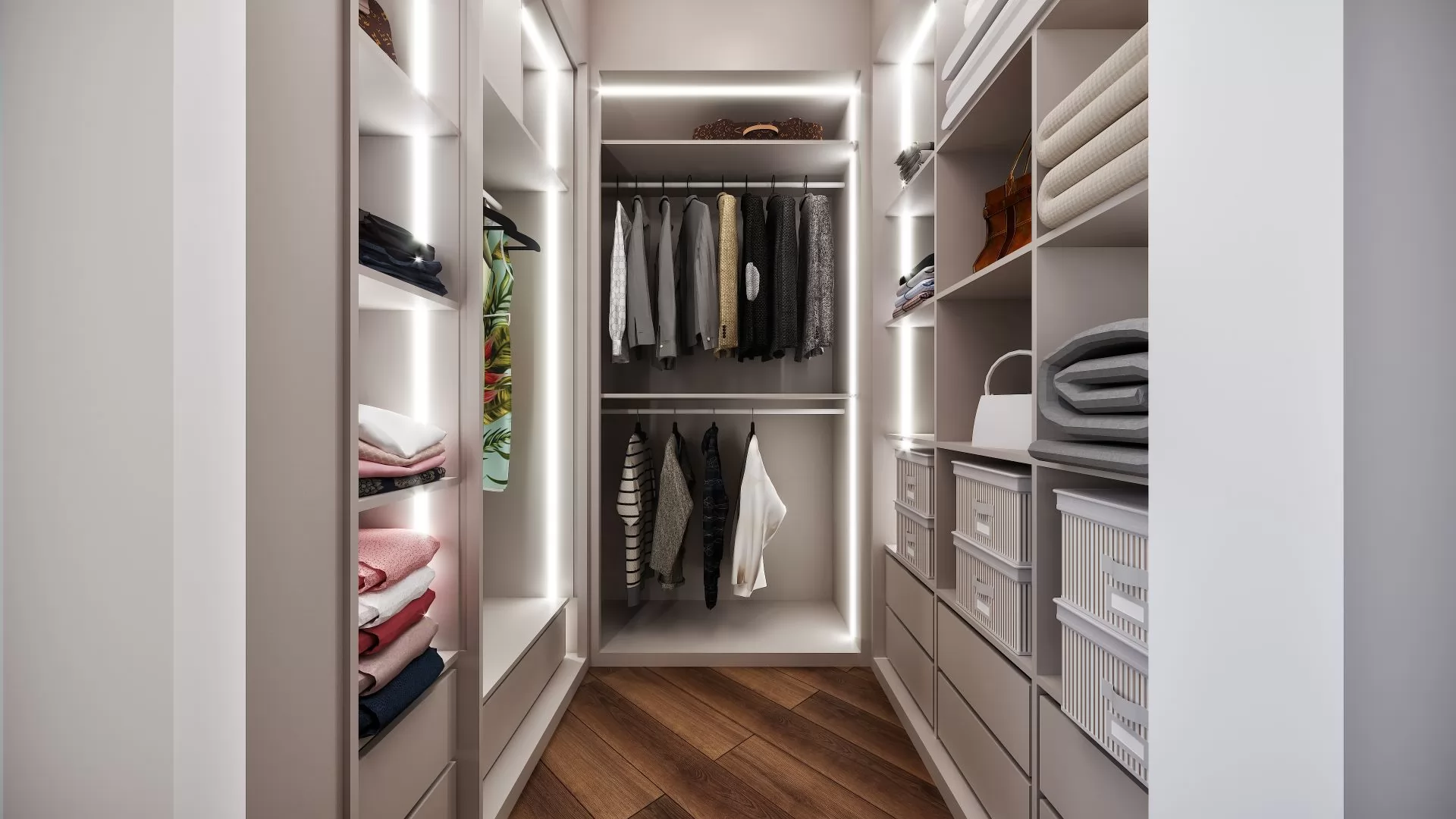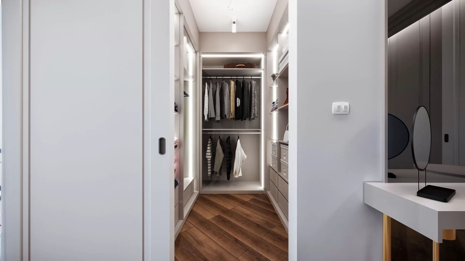 The initial layout of the apartment was not changed much because of architectural features of the house. Indeed, we managed to organize two bathrooms and three storage rooms besides the main three rooms and a terrace on the second floor. Having such a monochrome palette an interior is full of details. This effect we achieved by mixing many different textures and thoroughly thought lighting scenarios in the interior design.