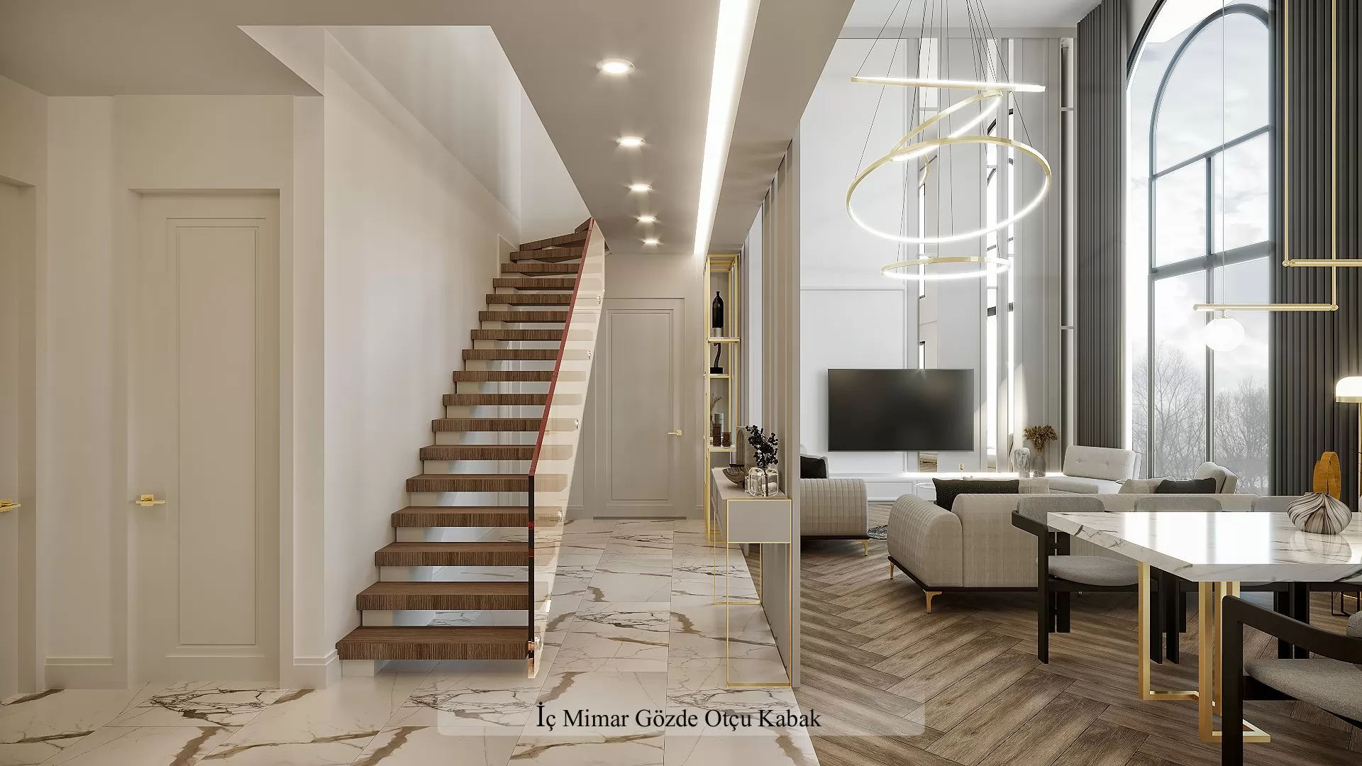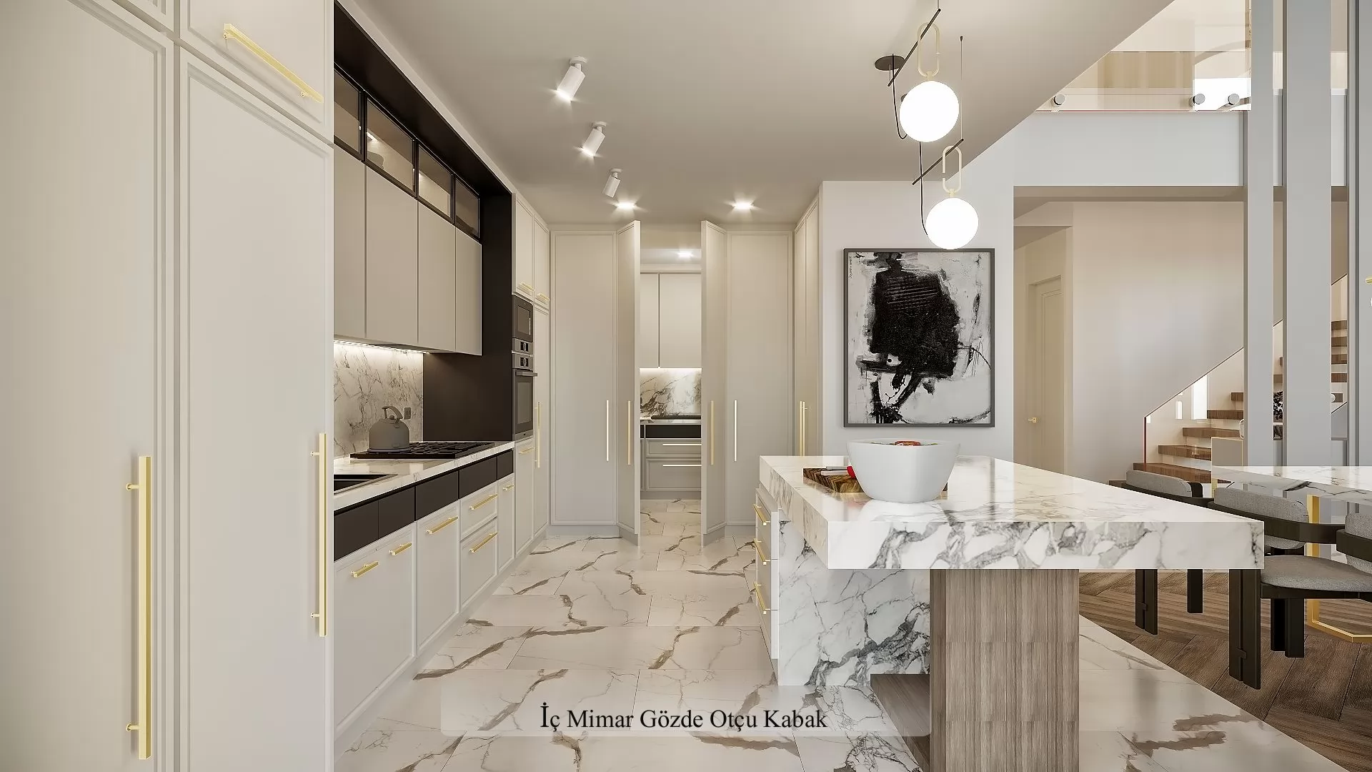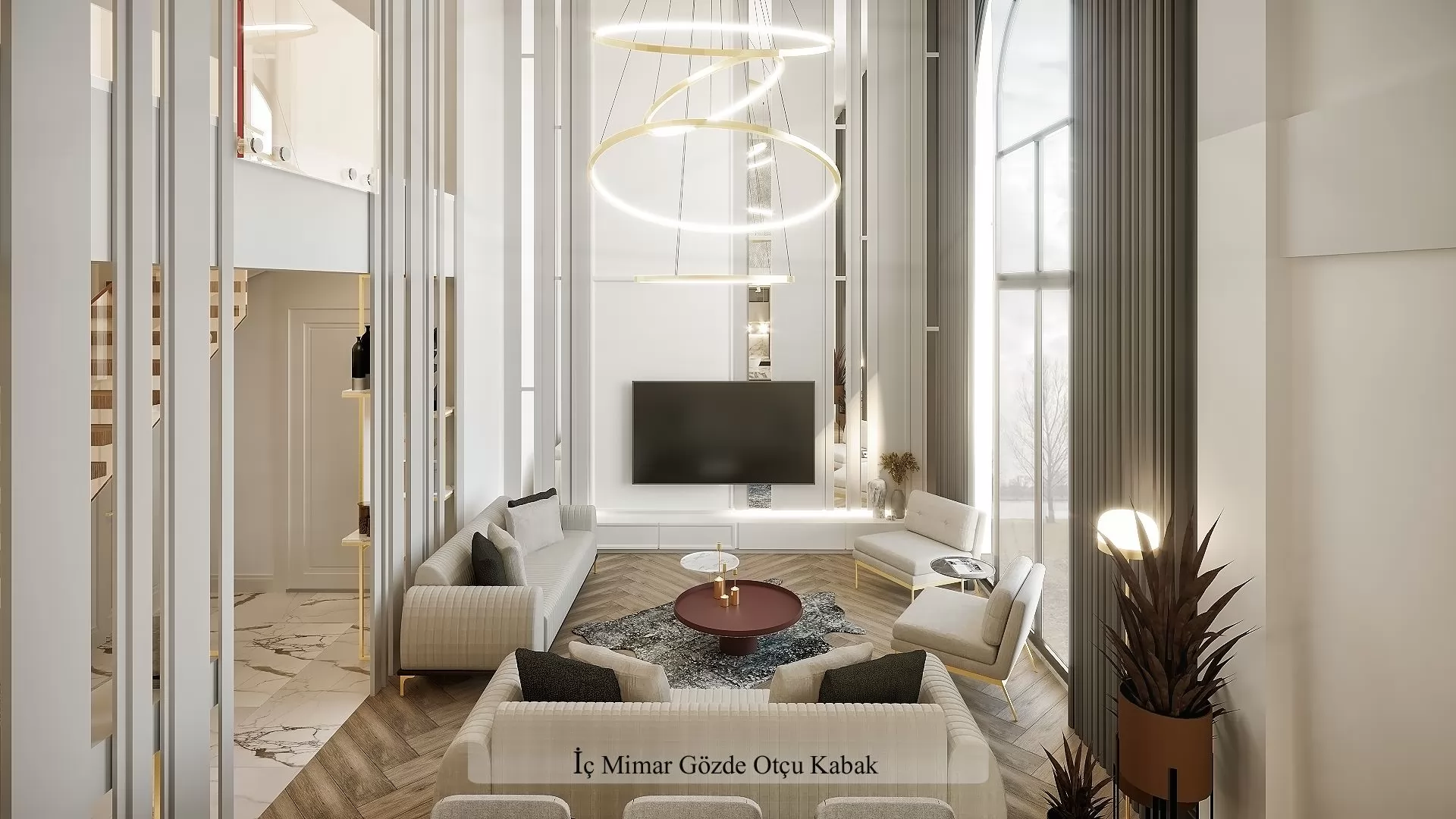 The initial layout of the apartment was not changed much because of architectural features of the house. Indeed, we managed to organize two bathrooms and three storage rooms besides the main three rooms and a terrace on the second floor. Having such a monochrome palette an interior is full of details. This effect we achieved by mixing many different textures and thoroughly thought lighting scenarios in the interior design.